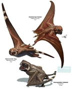 Anurognathus is an extinct genus of small pterosaur that lived during the late Jurassic Period (Tithonian stage). Anurognathus was first named and described by Ludwig Döderlein in 1923. The type species is Anurognathus ammoni. The genus name Anurognathus is derived from the Greek αν/an- ("without"), оυρα/oura ("tail"), and γναθος/gnathos ("jaw") in reference to its unusually small tail relative to other "rhamphorhynchoid" (i.e. basal) pterosaurs. The specific name ammoni honours the Bavarian geologist Ludwig von Ammon, from whose collection Döderlein had acquired the fossil in 1922.