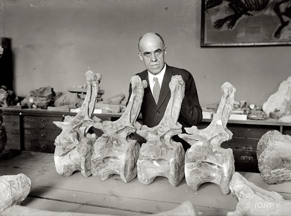 Gilmore with vertebrae of Diplodocus longus, 1924.