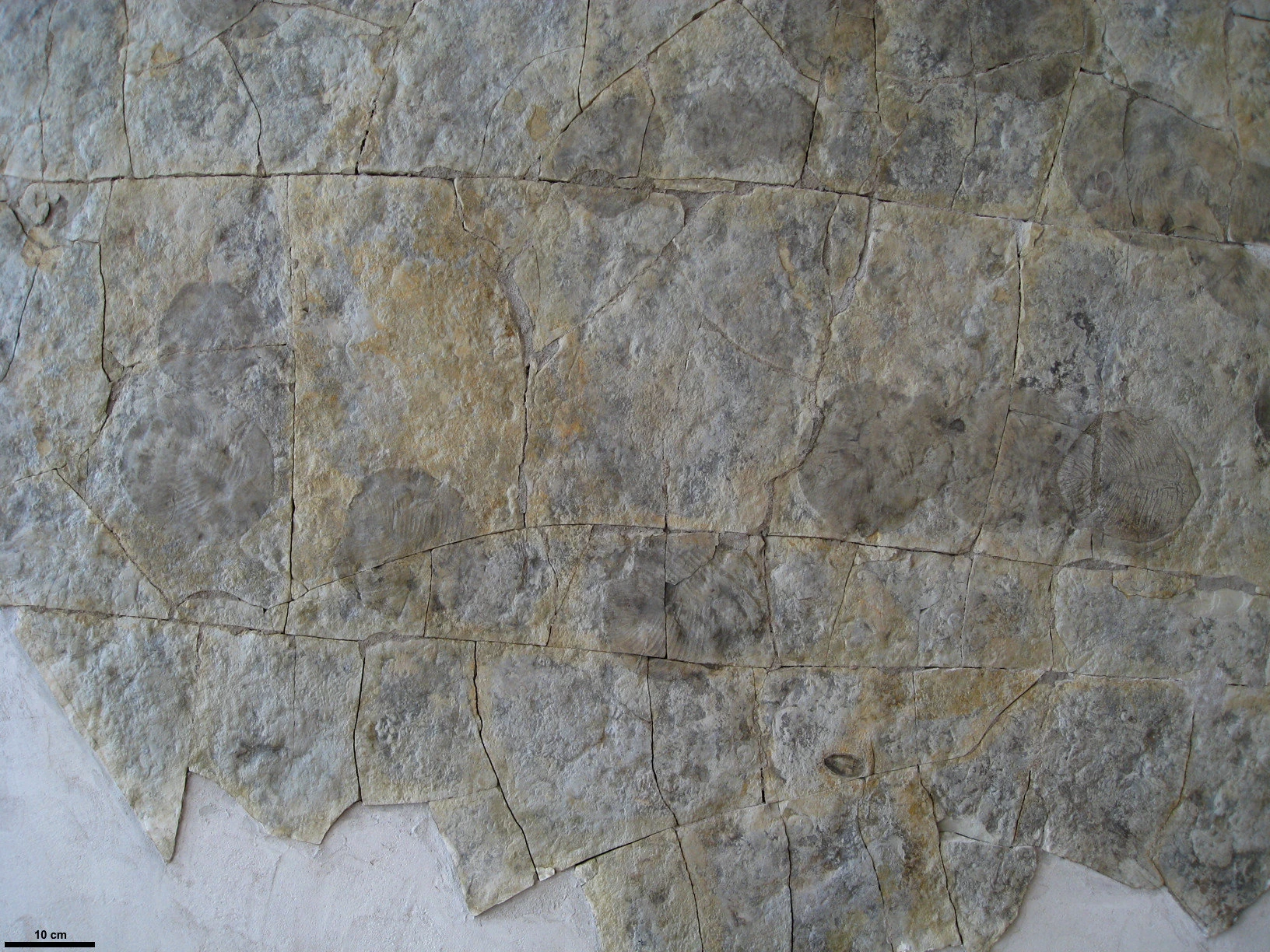 The fossil Charniodiscus is barely distinguishable from the "elephant skin" texture on this cast.