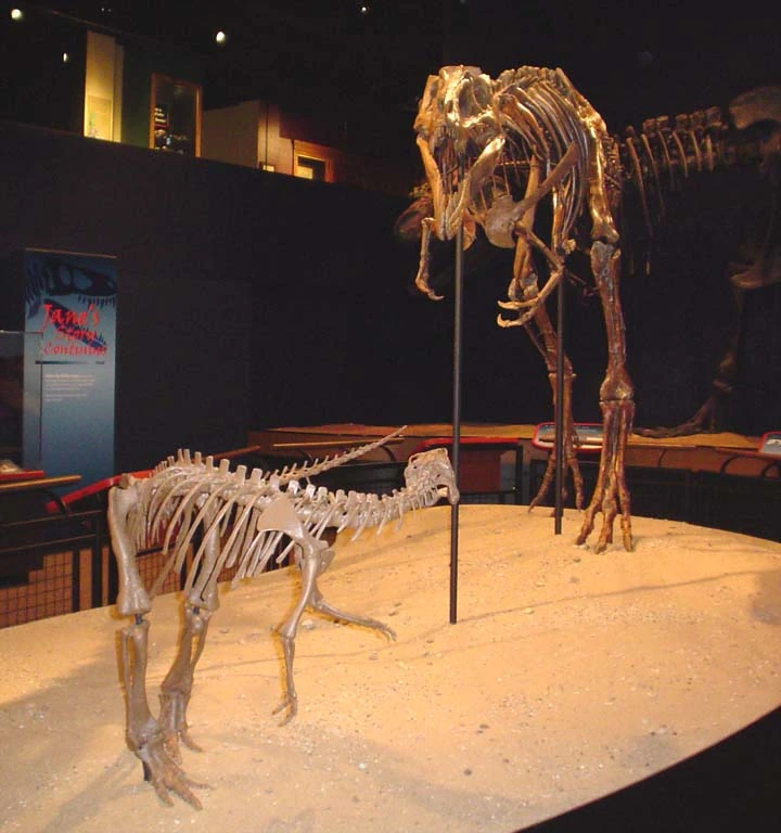 Jane the nickname given to a fossil specimen of small tyrannosaurid dinosaur (a juvenile) Tyrannosaurus rex, officially known as BMRP 2002.4.1, discovered in the Hell Creek Formation in southern Montana. After four years of preparation, Jane was put on display at Rockford, Illinois' Burpee Museum of Natural History as the centerpiece of an exhibit called "Jane: Diary of a Dinosaur." Paleontologists who support the theory that Jane represents a juvenile believe the tyrannosaur was approximately 11 years old at its time of death, and its fully restored skeleton measured 6.5 metres (21.5 ft) long, about half as long as the largest known complete T. rex specimen, nicknamed "Sue," which measures 13 m (42.6 ft) long. The weight of the Jane specimen in life was probably nearly 680 kg (1,500 lbs). Its large feet and long legs indicate it was built for speed and could possibly run as fast as 20-30 miles per hour. Its lower jaw has 17 curved, serrated teeth. Despite having a typically female name, Jane's sex is unknown--the specimen was named after Burpee Museum benefactor Jane Solem. The specimen was found in the summer of 2001 by Carol Tuck and Bill Harrison. Ms. Tuck and Mr. Harrison were team members of an expedition led by Burpee Museum curator Michael Henderson.[1]