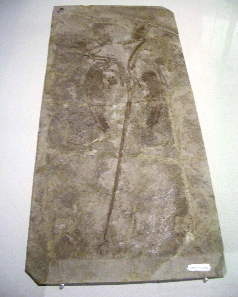 Cast of the holotype specimen of Microraptor gui, on display at the Paleozoological Museum of China.