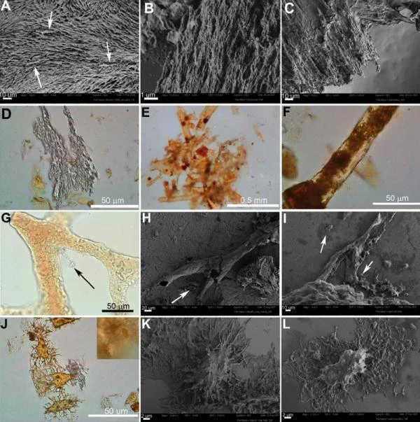 Laboratory tests confirmed that the bone fragments showed marked preservation of original tissues and molecules, with microstructures resembling soft, transparent vessels, cells and fibrous matrix, and proteins.[1] A total of eight collagen peptides and 149 amino acids from four different samples, sequences that held up when multiple validation steps were performed, including comparisons with synthetic peptides using a spectral comparison algorithm and statistical evaluation.[1]