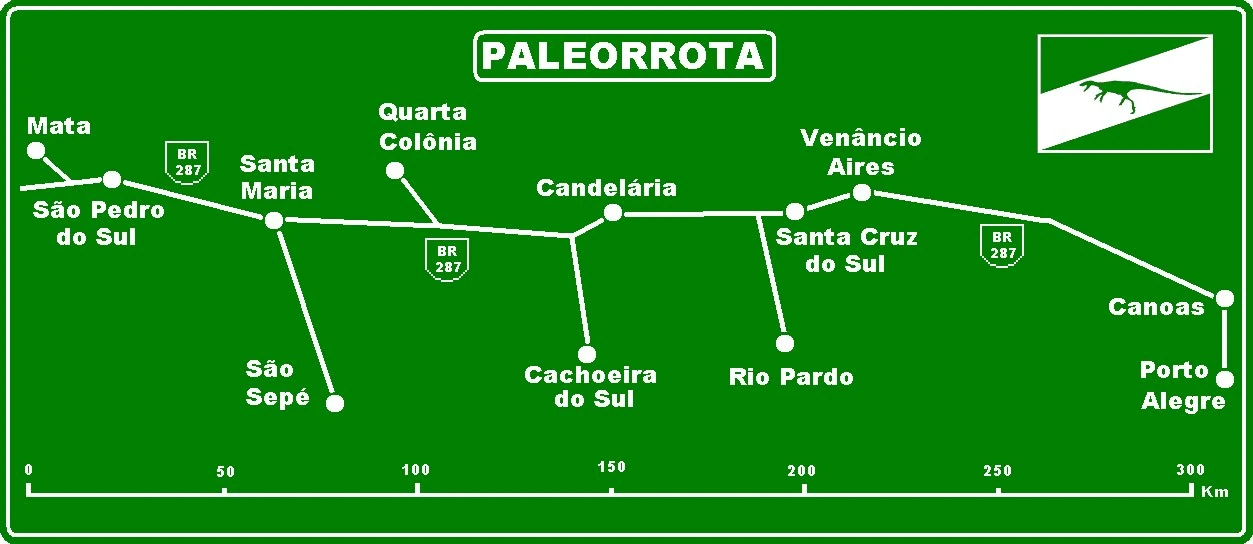 Paleorrota, also called rota paleológica, literally paleoroute in English), is a geopark located in central Rio Grande do Sul, Brazil. The rocks and fossils found along the route date back to the times when there was only one supercontinent Pangaea. The BR-287 is the main highway in the area and is called the Highway of Dinosaurs due to fossil localities crossing many municipalities of the region. Paleorrota is a simple and single term. Was adopted because the term Ruta Paleontológica, was already used in countries such as Spain, Bolivia, Colombia, and Mexico, which caused confusion among tourists.