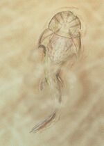 The earliest studies of placoderms were published by Louis Agassiz, in his five volumes on fossil fishes, 1833–1843. In those days, the placoderms were thought to be shelled jawless fish akin to ostracoderms. Some naturalists even suggested that they were shelled invertebrates, or even turtle-like vertebrates. The work of Dr. Erik Stensiö, at the Swedish Museum of Natural History, Stockholm, from the late 1920s established the details of placoderm anatomy, and identified them as true jawed fishes related to sharks. He took fossil specimens with well-preserved skulls, and ground them away, one tenth of a millimeter at a time. Between each grinding, he made an imprint in wax. Once the specimens had been completely ground away (and so completely destroyed), he made enlarged, three dimensional models of the skulls in order to examine the anatomical details more thoroughly. Many other placoderm specialists suspected that Stensiö was trying to shoehorn placoderms into a relationship with sharks, but with more fossil specimens found, the theory of placoderms being the sister-group of chondrichthyians became accepted as fact. However, with the discovery and examination of the exquisitely preserved Gogo reef placoderm fossils, it became apparent that the placoderms shared anatomical features not only with chondrichthyians, but with other gnathostome groups, as well. For example, Gogo placoderms show separate bone for the nasal capsules which are incorporated into the braincase of both sharks and bony fish. [2][3] Because of these new insights provided by the Gogo Reef specimens, coupled with the fact that placoderms also share anatomical features only with the jawless Osteostracans, the theory that placoderms are the sister group of chondrichthyians has been replaced in favor of the theory that placoderms are a group of stem gnathostomes, in other words, they are the sister group of all other known gnathostomes.