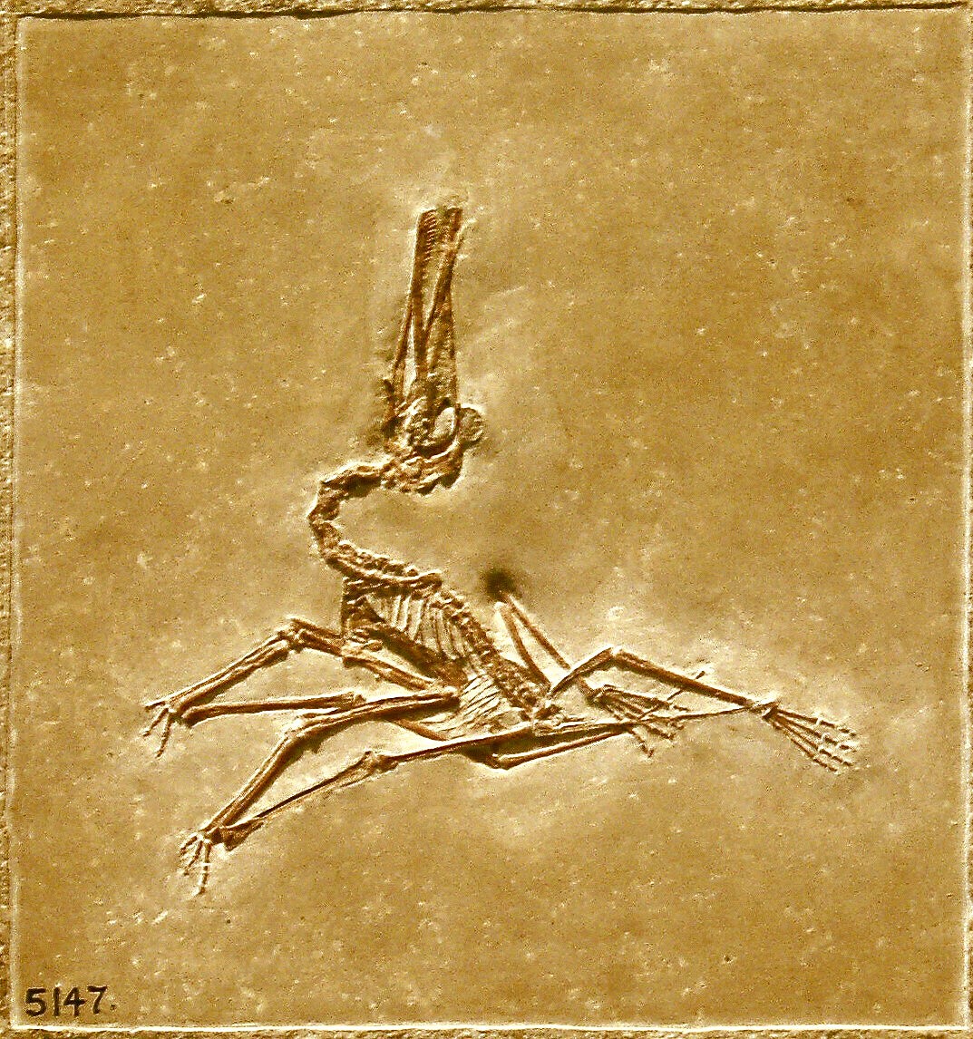 The wings were long, and the wing membranes appear to have lacked the furry covering of pycnofibres present in some other pterosaurs (such as Pterorhynchus and Jeholopterus). The wing membrane extended between the fingers and toes as webbing, and a uropatagium (secondary membrane between the feet and tail) was present, as well as a propatagium (membrane between the wrist and shoulder). Both the finger and toe claws were covered in keratin sheaths that extended and curved into sharp hooks well beyond their bony cores.