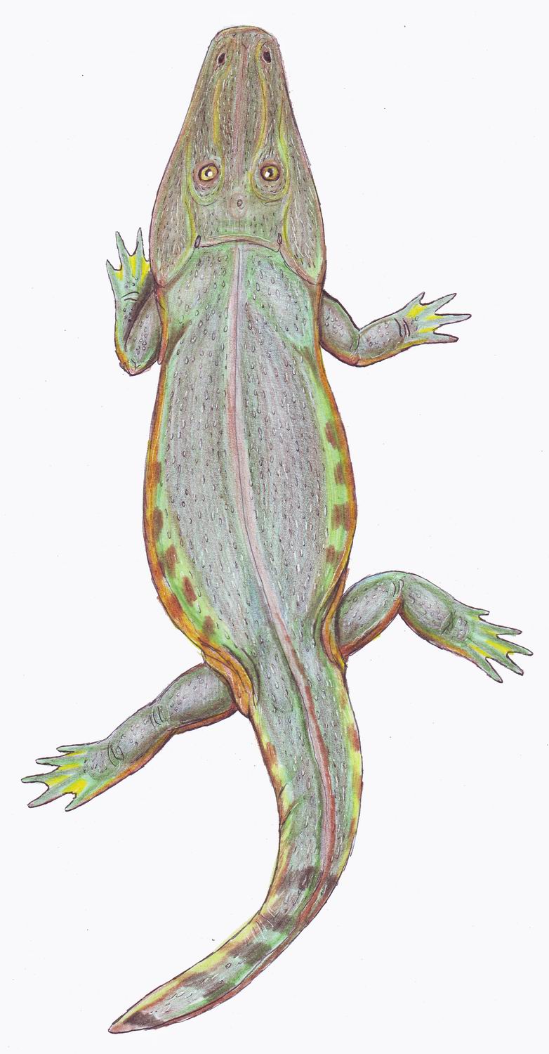 - ^ Anderson J.S., Reisz R.R., Scott D., Fröbisch N.B., & Sumida S.S. (2008): A stem batrachian from the Early Permian of Texas and the origin of frogs and salamanders. Nature no 453: pp 515-518