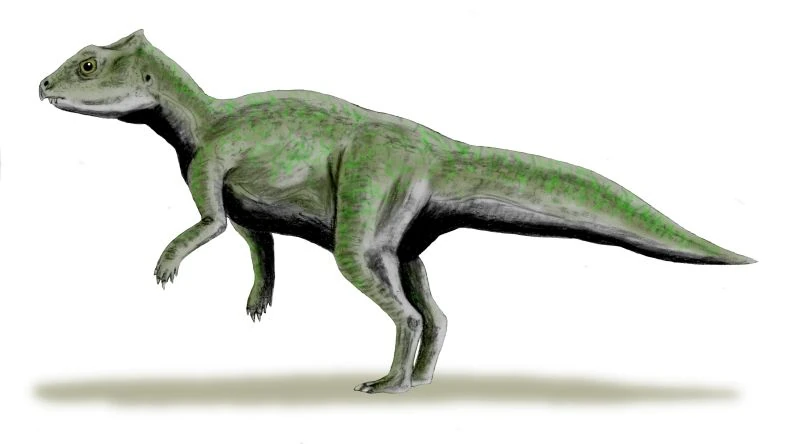 Despite a virtually frill-less and totally hornless skull, Yinlong is a ceratopsian. Its skull is deep and wide and relatively large compared to most ornithischians, but also proportionately smaller than most other ceratopsians.